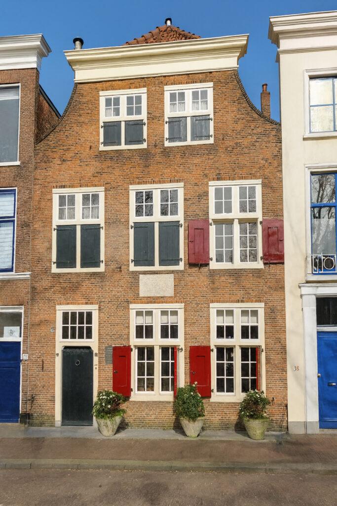 Hier stonden het huis van graaf De Noyelles, een Franse hugenoot en generaal in dienst van de Republiek, en de woning van Hugo de Groot, grondlegger van het volkenrecht. Links liggen de Gevangenpoort en de Galerij Willem V, met schilderijen van stadhouders, Jan Steen en Van Ruysdael met trekschuit.