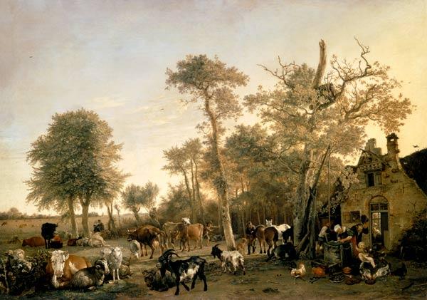 Een van de meest originele en creatieve kunstenaars uit de 17de eeuw is Paulus Potter (1625 – 1654). Hij staat bekend als de dierschilder van de Gouden Eeuw en heeft een ongeëvenaard gevoel voor realisme. Hij weet ons steeds weer te overtuigen van zijn talent en zorgt voor veel innovaties. Potter schildert historiestukken met Bijbelse en mythologische voorstellingen, landschappen, genrestukken met het boerenleven, jachttaferelen en natuurlijk dierstukken. Zijn oeuvre is beperkt tot ongeveer 100 schilderijen en een aantal tekeningen en etsen. Dit kleine oeuvre bouwde hij op in een beperkt aantal jaar, aangezien hij al jong stierf. Potter werd slechts 28 jaar. Al op 14/15 jarige leeftijd ontpopte hij zich als groot talent. Zijn beroemdste werk, ‘De Stier’ schilderde hij op 21 jarige leeftijd.